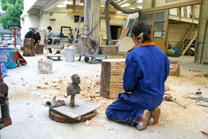 多くの生徒は金属をハンマーで叩いて形を作る「鍛金」